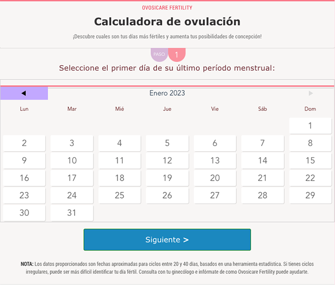 Solo tienes que introducir la fecha de tu última regla y la duración de tu ciclo menstrual y… listo !